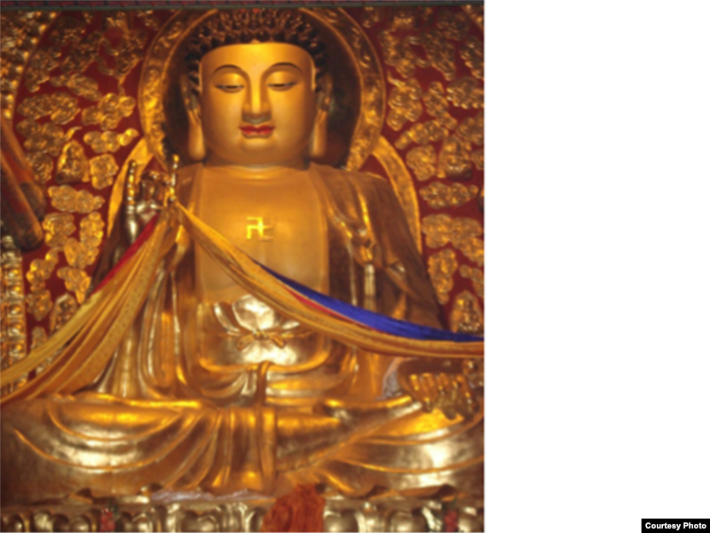 După-amiaza se anunţă... demagogică, aşa că o ştergem cu Radu de la Congresul Poeţilor (na! că am zis-o; încă puţin şi vom lansa chemări de genul: „Poeţi din toate ţările, uniţi-vă!”), pe dealuri (la propriu). Urcăm în pantă, iar priveliştea ce ni se deschide în faţa ochilor ne răsplăteşte însutit efortul – un templu budist, în cîteva nivele, cu nelipsiţii prezicători îmbrăcaţi în negru de la intrare, ne primeşte (cu pîine şi ceai verde, cum se va dovedi peste un sfert de oră) în incinta-i împrejmuită cu un zid de cărămidă roşie ornat cu zvastici. Străvechi simbol tibetan, zvastica îşi etalează simetria perfectă, epurată de politic, pe drapele, pe zidurile templului principal, precum şi pe burta unui Buddha uriaş, căruia vin să i se închine mai multe femei cu părul împletit în gîţe subţiri şi negre ce atîrnă pînă la tălpi. Au obrajii aproape vineţi, de la soarele ce coace pe platoul tibetan, iar feţele şi portul colorat le trădează originea, alta decît chineză. (Aceleaşi feţe tibetane le vom întîlni a doua zi, la lacul Qinghai, situat la 3.205 m altitudine – dar despre asta, la timpul potrivit.)