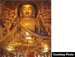 Nu e niciun turist în templu, aşa că n-avem cum să trecem neobservaţi. Puţinii credincioşi ard beţigaşe aromatizate, pe care şi le procură pe loc, cu doar un yuan mănunchiul. O primă curte interioară, cu cîteva altare, dintre care unul al unui Buddha culcat, ne transportă literalmente într-o altă lume: la un moment dat, o femeie-călugăr ne face semn să intrăm într-o încăpere destinată probabil oaspeţilor, unde ne serveşte cu un ceai verde, pregătit chiar de faţă cu noi, şi cu pîine de casă. Uşa e larg deschisă, ceea ce face ca ritualul ceaiului să fie însoţit, la distanţă de cîteva zeci de paşi, de prosternări în faţa unui Buddha surîzător. Urmărim fascinaţi gimnastica sacră a unui bătrîn şi a unei copile, şi o pace neobişnuită pune stăpînire pe sufletele noastre, de parcă am fi în sînul lui Dumnezeu, fie şi nirvanic.