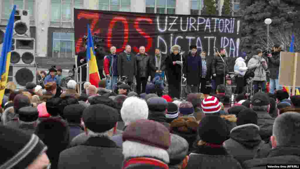 În Piaţa Marii Adunări Naţionale, opoziţia extraparlamentară, condusă de fostul lider PPCD Iurie Roşca a organizat o manifestaţie de protest împotriva Alianţei pentru Integrare Europeană, manifestaţie la care s-a cerut nu numai demisia guvernului dar şi organizarea de alegeri anticipate.