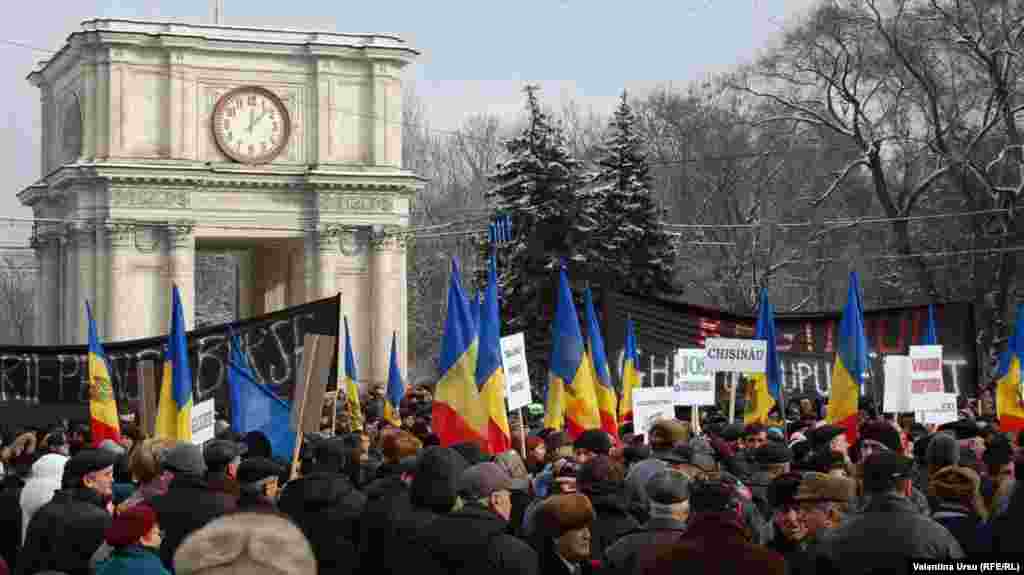 În Piaţa Marii Adunări Naţionale, opoziţia extraparlamentară, condusă de fostul lider PPCD Iurie Roşca a organizat o manifestaţie de protest împotriva Alianţei pentru Integrare Europeană, manifestaţie la care s-a cerut nu numai demisia guvernului dar şi organizarea de alegeri anticipate.