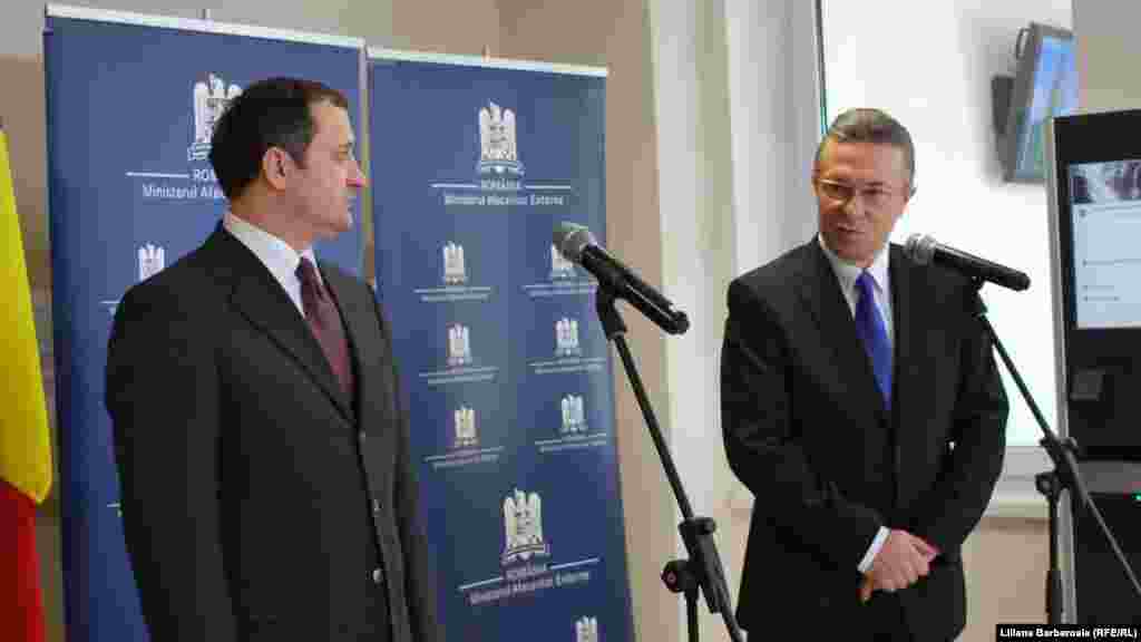Premierul Republicii Moldova Vlad Filat (stânga) şi ministru de externe al României, Cristian Diaconescu.