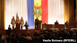 În discursul ţinut astăzi în sediul temporar al Parlamentului unde au fost invitaţi aproximativ 450 de musafiri de onoare, noul preşedinte, Nicolae Timofti, a vorbit întâi de toate despre nevoia consolidării societăţii moldoveneşti: