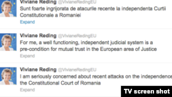 Un alt semnal de atenționare a venit din parte comisarului european pentru justiţie şi vicepreşedintă a Comisiei Europene Vivian Reding. Vivian Reding s-a declarat profund îngrijorată de recentele atacuri la independenta Curţii Constituţionale din România. Mesajul a fost postat pe reţeaua de microblogging Twitter.