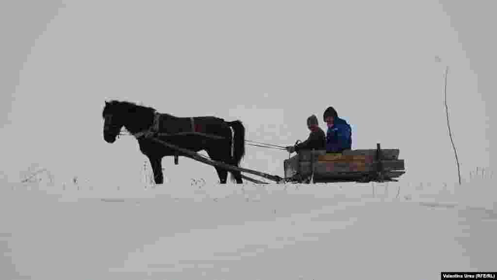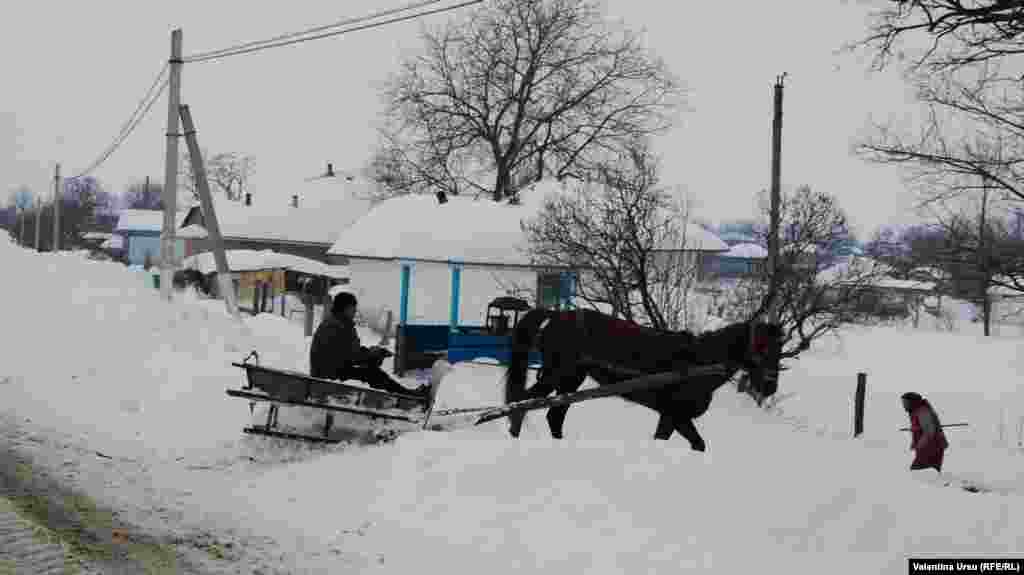 Moldova - winter, snow, horse-drawn sleigh, Drochia district