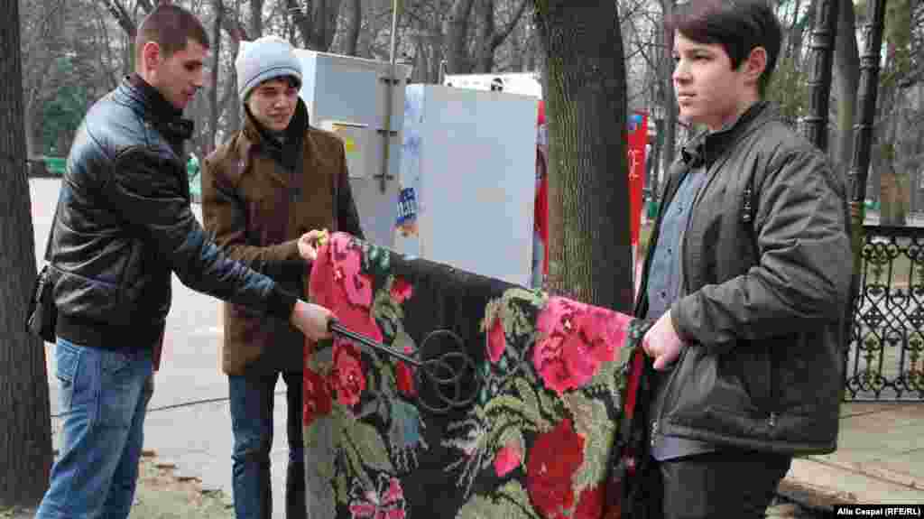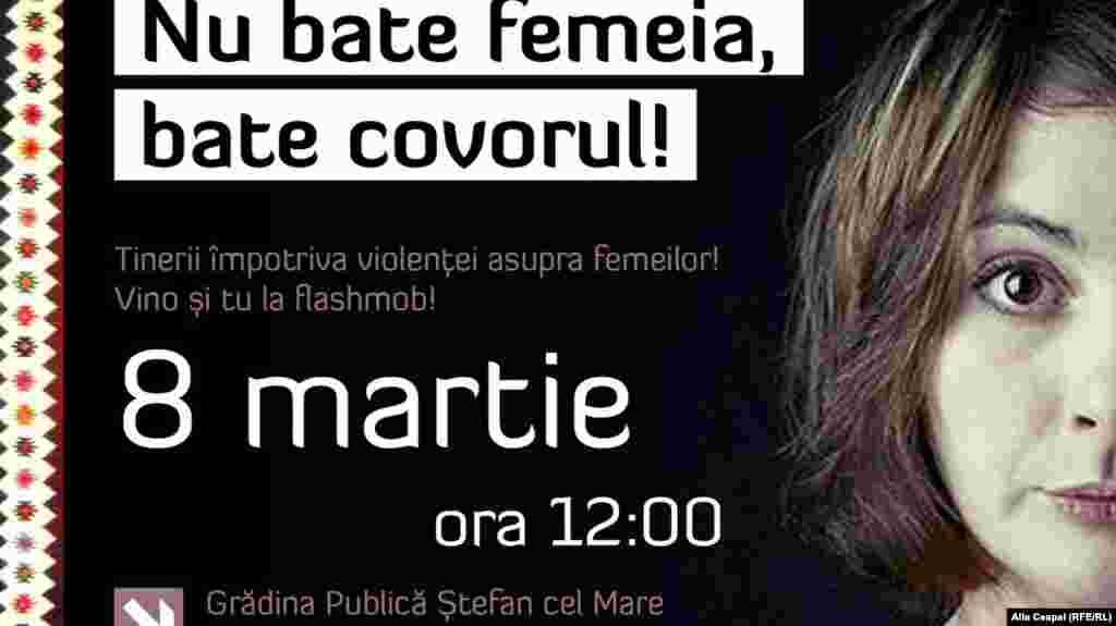 De ziua femeii, tinerii de la Centrul Media - o organizație neguvernamentală creata în Moldova cu sprijinul UNICEF, cu scopul de a instrui tinerii in diverse domenii - au organizat un flash-mob (adunare spontană de oameni, n. red) la Chișinău și unul la Soroca împotriva violenței asupra femeilor. Inițiativa acțiunii, mai putin obișnuită pentru ziua când de obicei se vorbește numai despre lucruri bune și se fac complimente femeilor, se datorează faptului că violenţa împotriva femeilor este un fenomen răspândit în societatea moldovenească. Fotografii de Alla Ceapai.
