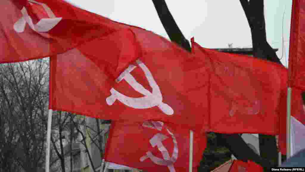 Câteva sute de membri şi simpatizanţi ai Partidului Comuniştilor, în frunte cu liderul partidului, Vladmir Voronin, au protestat în faţa Palatului Republicii, cerând alegeri anticipate şi legalizarea simbolurilor comuniste, secera şi ciocanul. Protestul a continuat în faţa Preşedinţiei.
