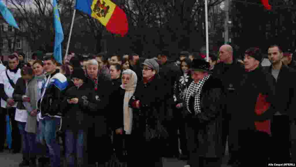 Primăria orașului Chișinău și Partidul Liberal au organizat un miting de comemorare a evenimentelor din aprilie 2009, la patru ani de la manifestaţiile de protest din aprilie 2009, provocate de victoria partidului comuniştilor în alegerile parlamentare. Mitingul de protest din 7 aprilie 2009 a degenerat în acte de violenţă, soldate cu moartea unei persoane, Valeriu Boboc. Mulţi din tinerii protestatari au fost reţinuţi şi se pare maltrataţi în arestul poliţiei în aprilie 2009. (Foto: corespondenta Europei Libere Alla Ceapai)