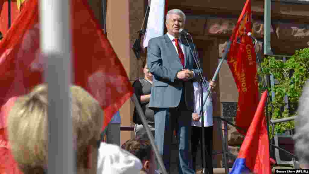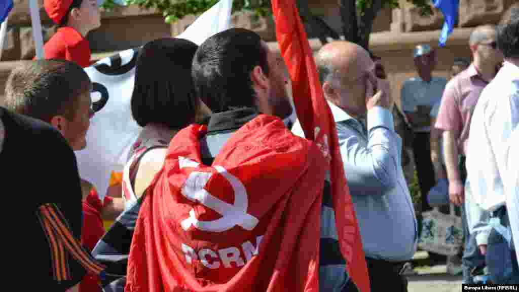De ziua Internaţională a muncii, simpatizanţii şi membrii Partidului Comuniştilor s-au adunat la o acţiune în faţa Academiei de Ştiinţe, după care au mărşăluit cu steaguri şi pancarte pe bulevardul Stefan cel Mare si Sfant din Chişinău. Manifestanţii scandau ,,Alegeri, dreptate, solidaritate” şi şi-au exprimat nemulţumirea faţă de actuala conducere a ţării. (foto: Tamara Grejdeanu)