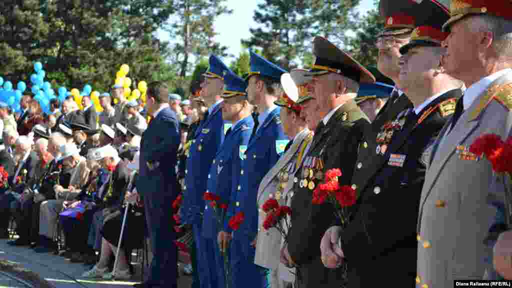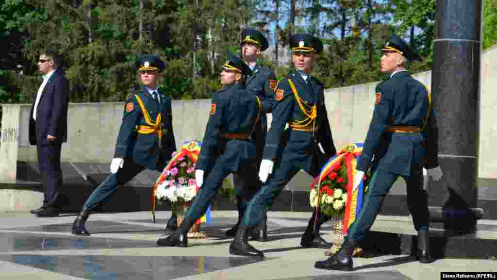 În capitala Moldovei a avut loc un miting de comemorare a celor căzuți în al doilea război mondial. Au participat preşedintele Republicii Moldova Nicolae Timofti, vicepreședinta Parlamentului Liliana Palihovici şi prremierul interimar Iurie Leancă. Au fost prezenți și reprezentanți ai PS și ai PCRM. (foto: Diana Răilean)