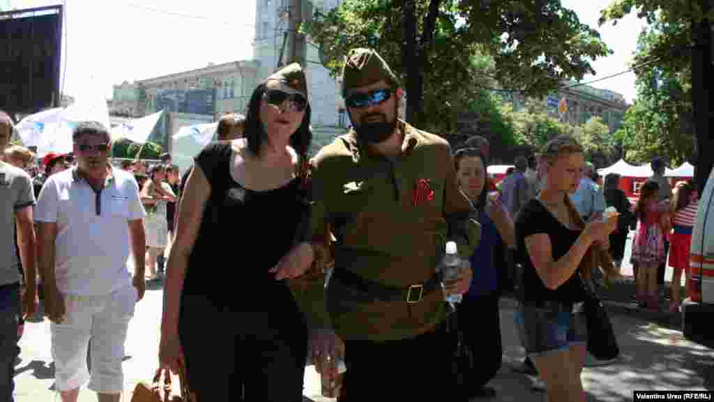 Mii de oameni au venit la concertul organizat de Ambasada Federației Ruse unde au fost invitați să cânte vedetele ruse Iosif Cobzon și Lev Lescenko. Sute de politisti asigura ordinea publica. Mai multe persoane cu panglica Sf. Gheorghe la piept, sau îmbrăcate în uniforme sovietice și purtand drapele roșii, au împînzit Piața Marii Adunări Nationale unde este sărbătorită cu mare fast Ziua Victoriei. Unionistii protestează împotriva acestei manifestații rusești și marchează prin doliu ziua de 9 mai la Chișinău. (foto Valentina Ursu și Victor Lutenco)