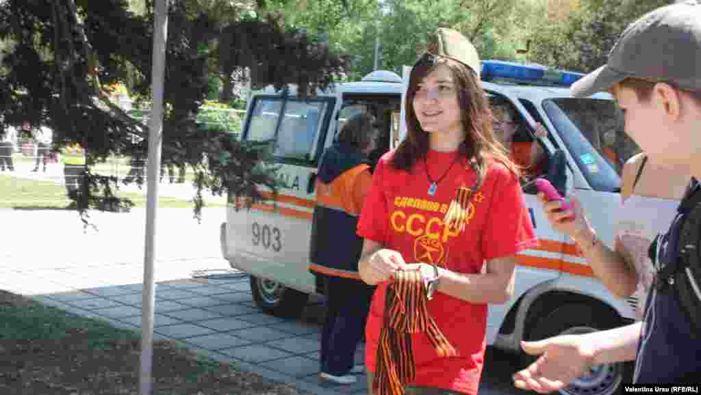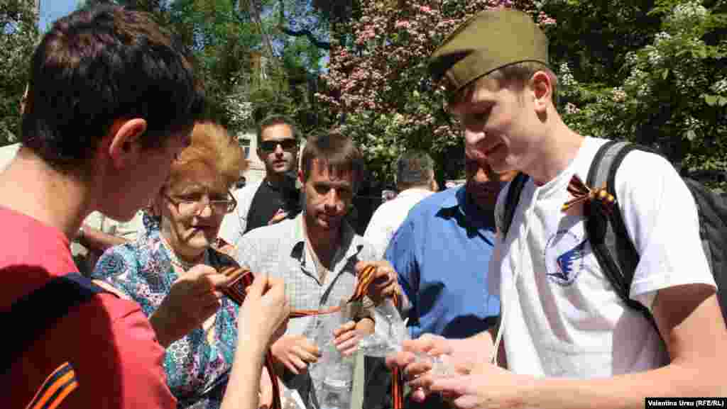 Moldova, Russian Youth League share St. George ribbon in central Chisinau at Victory Day celebrations