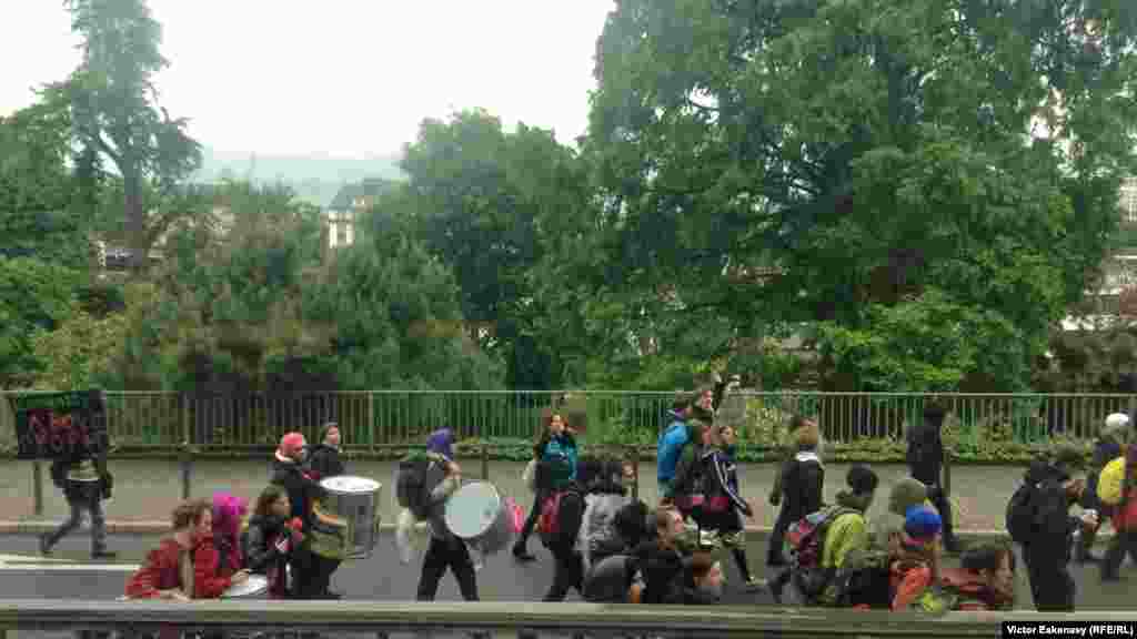 Forțe masive de poliție au fost mobilizate pentru a limita daunele cauzate de protestatari, în timp ce întreg centrul Frankfurtului este închis circulației