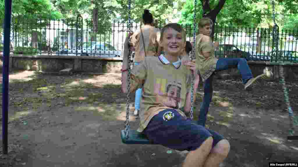 Andreea Bolea pe terenul de joaca pentru copii din gradina publica Stefan cel Mare