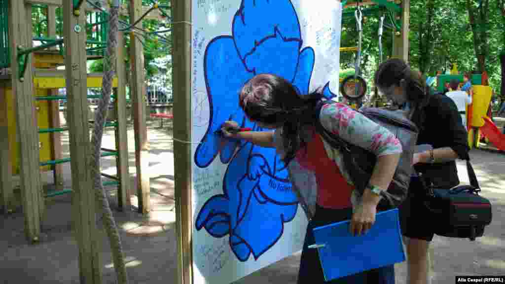 Un flashmob, în centrul Chişinăului, de Ziua internațională a copiilor-victime ale agresiunii. Reprezentanţi ai UNICEF, Ministerului Muncii şi copii au împărţit trecătorilor îngeraşi din hârtie în susţinerea minorilor care au suferit de pe urma abuzului şi violenţei.