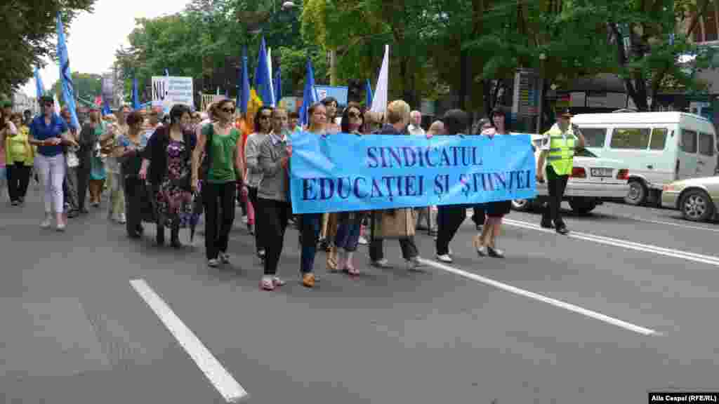 Confederația Națională a Sindicatelor din Moldova a sărbătorit astăzi Ziua profesională a sindicalistului. Printr-un marş, de la Academia de Ştiinţe până până în Piaţa Marii Adunări Naţionale, sindicaliştii au cerut guvernării majorări de salarii şi acţiuni mai energice pentru diminuarea muncii la negru şi reducerea ratei şomajului. În fata guvernului, cele câteva mii de sindicaliști au fost