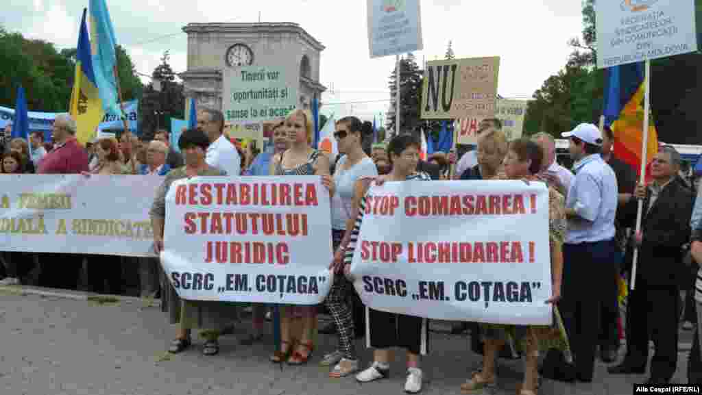 Confederația Națională a Sindicatelor din Moldova a sărbătorit astăzi Ziua profesională a sindicalistului. Printr-un marş, de la Academia de Ştiinţe până până în Piaţa Marii Adunări Naţionale, sindicaliştii au cerut guvernării majorări de salarii şi acţiuni mai energice pentru diminuarea muncii la negru şi reducerea ratei şomajului. În fata guvernului, cele câteva mii de sindicaliști au fost