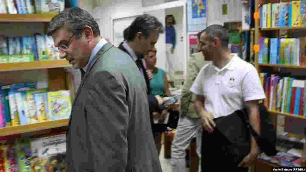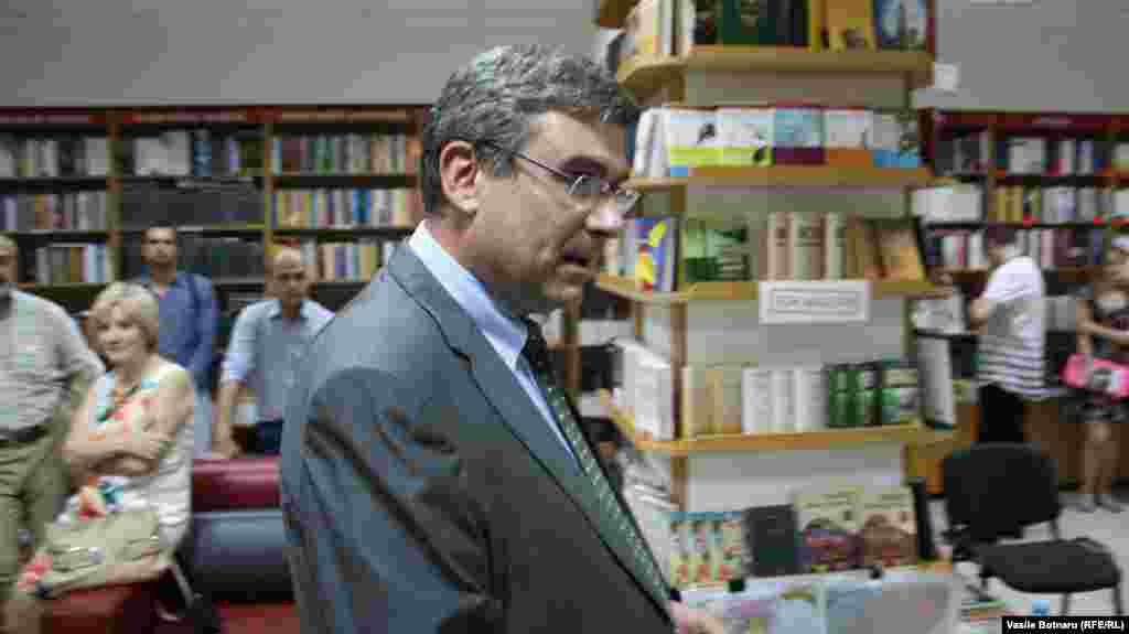 Fostul ministru de externe român Teodor Baconschi a lansat la librăria Cartier din Chișinău volumul „Legăura de chei. O mărturie diplomatică în dialog cu Armand Goșu”. Au fost prezenți, între alții, scriitorul Emilian Galaicu-Păun și fostul premier al Moldovei Vlad Filat. Fotografii de Vasile Botnaru, șeful biroului Europei Libere de la Chișinău.