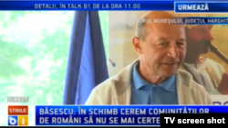 Băsescu a adăugat că Bucureștiul dorește ca statele din jur să îi trateze pe românii de pe teritoriile lor „așa cum îi tratăm noi pe minoritari în România: cu dreptul de a-și păstra limba, cultura, cu dreptul de a fi aleși automat în Parlament.”