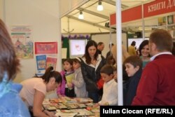 Un stand aparte era cel cu cărţile faimosului scriitor Spiridon Vangheli. Erau acolo mai multe volume ale povestitorului care au fost traduse în limbile italiană, rusă, lituaniană, ucraineană, tadjică. Spridon Vangheli e, poate, cel mai cunoscut scriitor moldovean în străinătate.