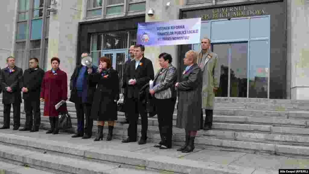 Peste 100 de primari din mai multe localității, reprezentanți ai diferitor partide politice, au protestat astăzi pașnic la Chișinau, în fata Guvernului si a Parlamentului, solicitând adoptarea în lectura finală a Legii finanțelor publice locale și intrarea ei în vigoare de la 1 ianuarie 2014. Legea ar urma să asigure autonomie financiară autorităților locale de nivelul întâi, adică primariilor și independența față de autoritățile raionale și cele centrale. Organizatorii acțiunii de protest, Congresul Autorităților Locale (CALM), au spus că urmau să participe peste 500 de primari, dar nu au venit pentru că ar fi supuși unor presiuni politice din partea partidelor din care fac parte.