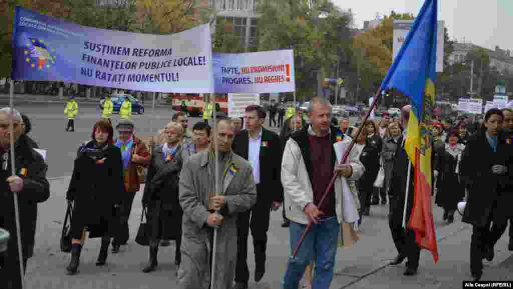 Peste 100 de primari din mai multe localității, reprezentanți ai diferitor partide politice, au protestat astăzi pașnic la Chișinau, în fata Guvernului si a Parlamentului, solicitând adoptarea în lectura finală a Legii finanțelor publice locale și intrarea ei în vigoare de la 1 ianuarie 2014. Legea ar urma să asigure autonomie financiară autorităților locale de nivelul întâi, adică primariilor și independența față de autoritățile raionale și cele centrale. Organizatorii acțiunii de protest, Congresul Autorităților Locale (CALM), au spus că urmau să participe peste 500 de primari, dar nu au venit pentru că ar fi supuși unor presiuni politice din partea partidelor din care fac parte.