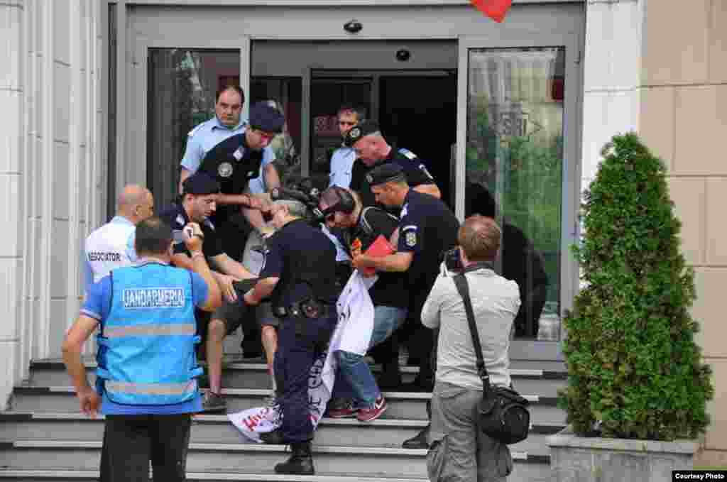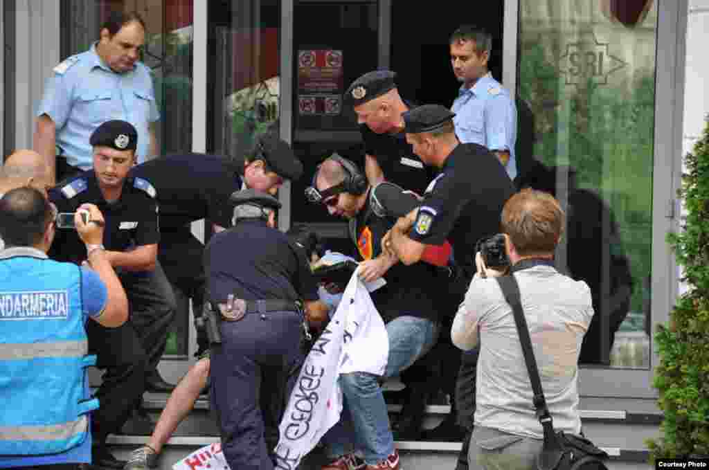 Legile supravegherii se află aîn faza de promulgare de către Președintele României. Acțiunea de joi din fața sediului Serviciului Român de Informații este un preambul la protestul care va avea loc sâmbătă, 12 iulie 2014, la sediul central al SRI din capitala României (Bulevardul Libertății Nr. 14). Galerie foto și text de Mihai Stan.