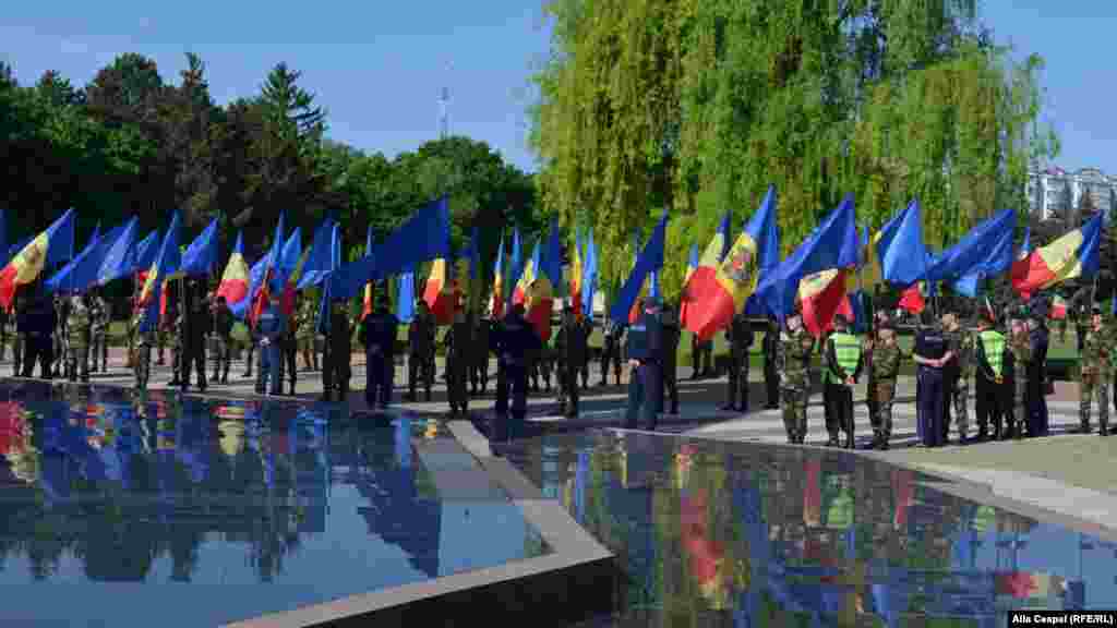 Ziua Victoriei a fost marcată la Chișinău de o serie de ceremonii la Memorialul „Eternitatea”, cu participarea președintelui statului, a primului ministru și liderilor coaliției parlamentare. PCRM a participat în mod discret, în timp ce Partidul Socialist a serbat de unul singur cei 70 de ani de la încheierea celui de-al Doilea Război Mondial în Europa. (Foto: Alla Ceapai)