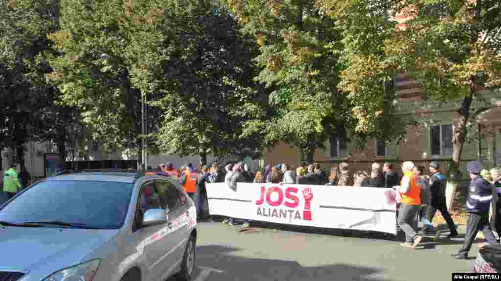 Protestatarii convocați și organizați de Partidul Socialiștilor și de Partidul Nostru au pichetat sediile partidelor Alianței de guvernămînt și au blocat în cîteva rînduri circulația la Chișinău.
