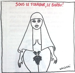 Totuși, după atentatele din ianuarie 2015 care au făcut 12 morți în redacție, redactorul-șef de la „Charlie Hebdo”, Riss, a anunțat că va înceta să mai publice caricaturi cu Mahomed, precum aceasta, a asasinatului Wolinski:
