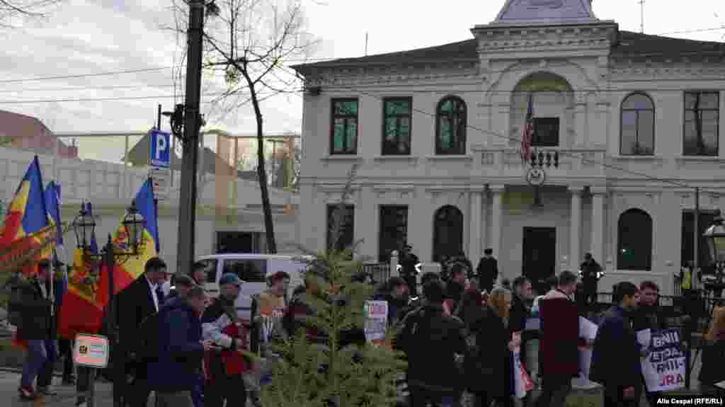 Socialiștii au protestat în fața ambasadelor SUA și a României