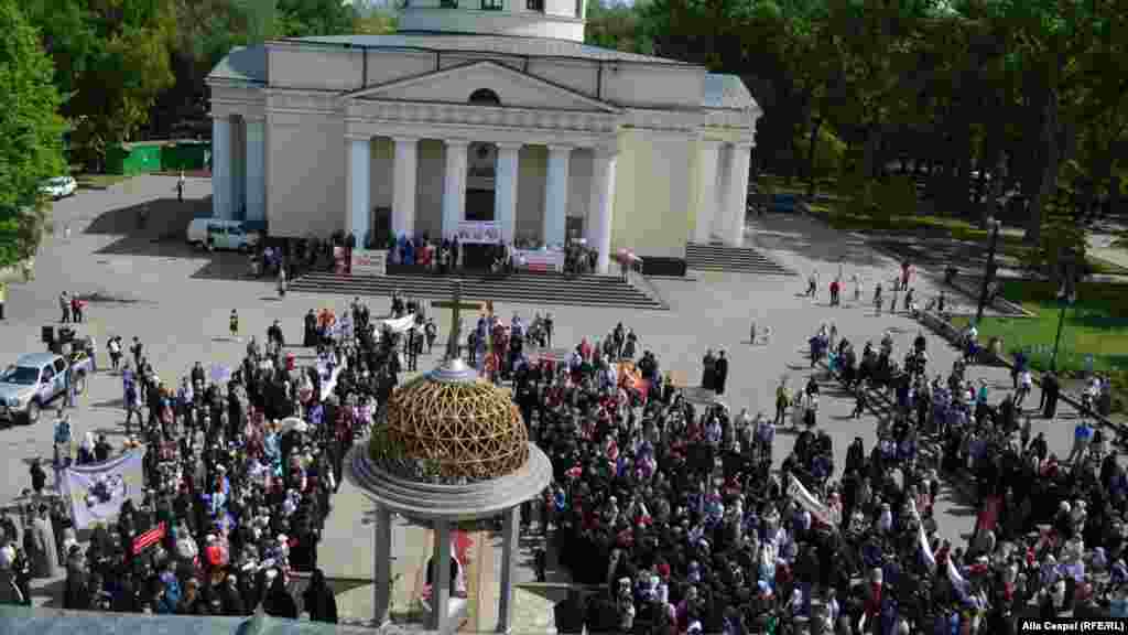 La Chișinău s-a desfășurat astăzi un marș homofob, organizat de Mitropolia Moldovei, sub pretextul apărării familiei tradiționale. Deși numit marș al tăcerii, organizatorii au folosit motociclete BMW, asemenea celor utilizate de Clubul pro-Kremlin al „Lupilor nopții”, clopote, și două mașini de lux cu inscripția unei societăți de rally-uri din Germania. Un reportaj foto de Alla Ceapai.