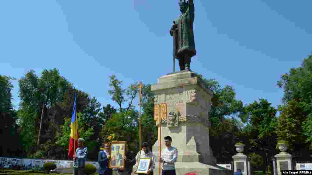 Protest anti-LGBT spontan organizat de un grup de preoți și credincioși ortodocși la statuia lui Ștefan cel mare.