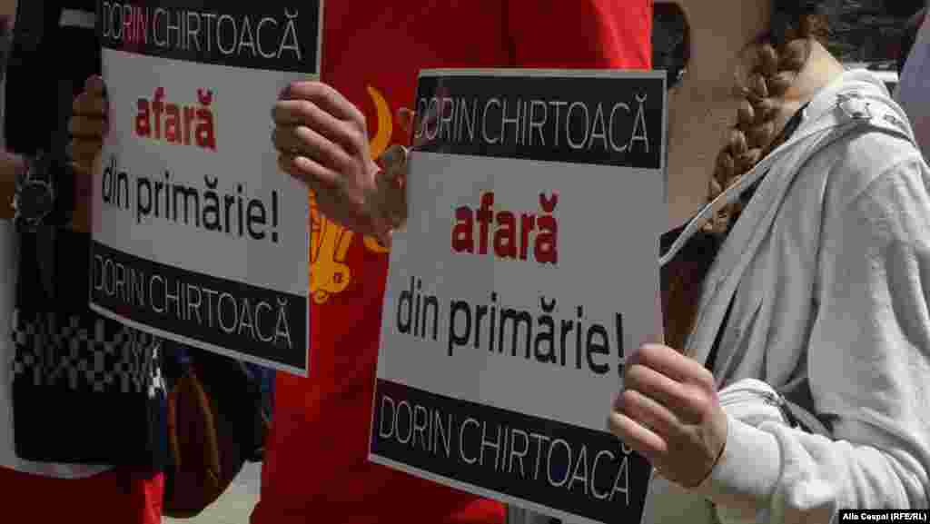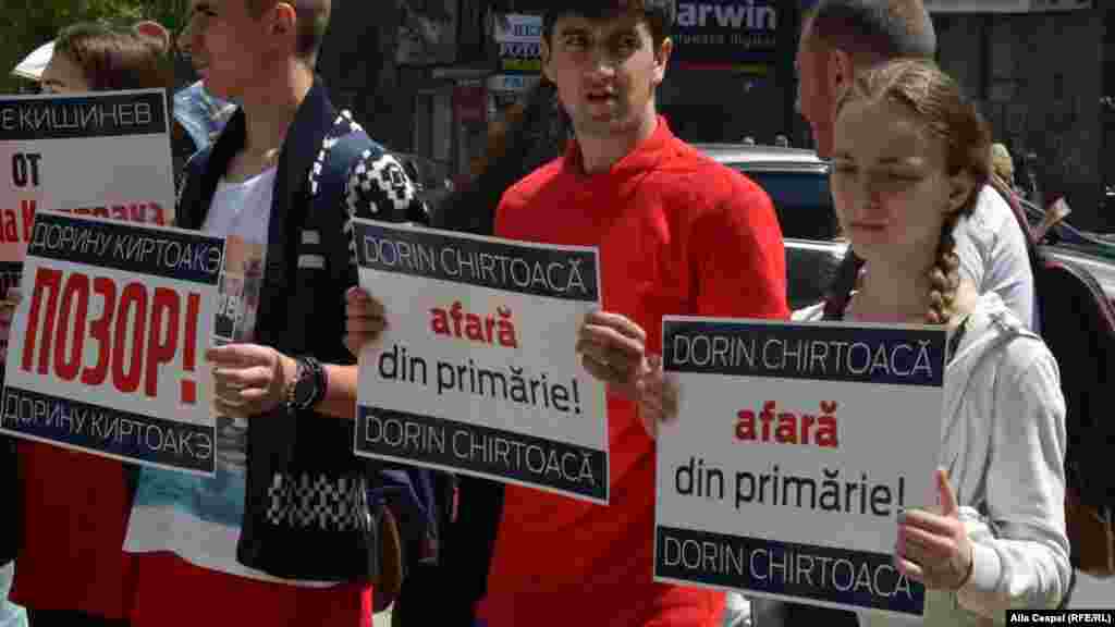 Fracţiunea socialistă şi cea popular europeană din Consiliul Municipal Chişinău au organizat, separat, astăzi proteste la Primăria Capitalei, cerând demisia primarului Dorin Chirtoacă. Consilierii din fracţiunea Popular Europeană din Moldova au schiţat şi o cerere de demisie pe care i-au prezentat-o primarului Chirtoacă. Activiştii socialişti au scandat „Chirtoacă pleacă!”, „Demisia!”, „Jos liberalii!” şi „Ruşine!”. Protestele au fost organizate în contextul incidentului de miercuri seara din sectorul Rîşcani, unde un teren aferent filialei unei bănci private s-a păbuşit în şantierul aflat în preajmă. Procuratura Generală a anunţat iniţierea urmăririi penale pe acest caz.