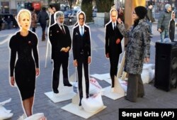 Putin și candidații prezidențiali din Ucraina - Expoziție stradală în Kiev