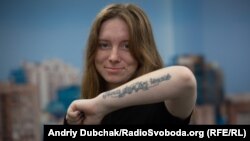 Sportiva veterană Olga Benda, înrolată în a 72a Brigadă mecanizată Zaporojenii Negri. Și-a pierdut un picior în război.