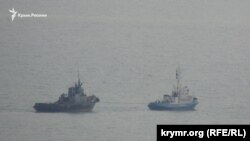 Potrivit unui reporter al agenţiei Reuters în Crimeea, cele trei nave erau duminică dimineaţă remorcate prin strâmtoarea Kerci către Marea Neagră, unde ele ar urma să fie predate Ucrainei.