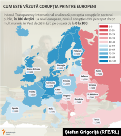 R.Moldova cade un pic în Indexul Percepției Corupției, România penultima în UE