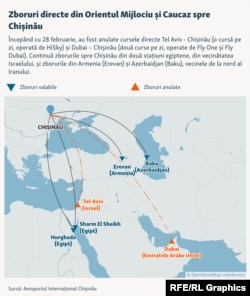 Din cauza conflictului militar din Orientul Mijlociu, după atacurile americano-israeliene asupra Iranului și loviturile de răspuns, spațiul aerian a fost închis și în Iran, Irak, Emiratele Arabe Unite, Qatar, Kuweit, Bahrain, Siria.