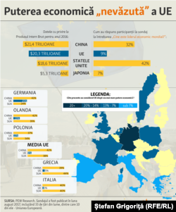 Pânã în 2014, UE a depășit toate celelalte țări în termeni de PIB, dar chiar și atunci, puțini au considerat-o drept cea mai puternică economie din lume, potrivit unor sondaje anterioare ale Centrului de Cercetare Pew.